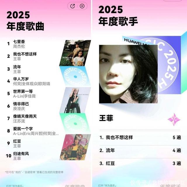 深夜EMO单曲循环了多少天?偷偷喜欢的歌手是谁?从《七里香》到《世界第一等》,再到歌后王菲……我2025年的每一个音乐印迹,都被华为音乐的年度听歌报告精准“押中”了!