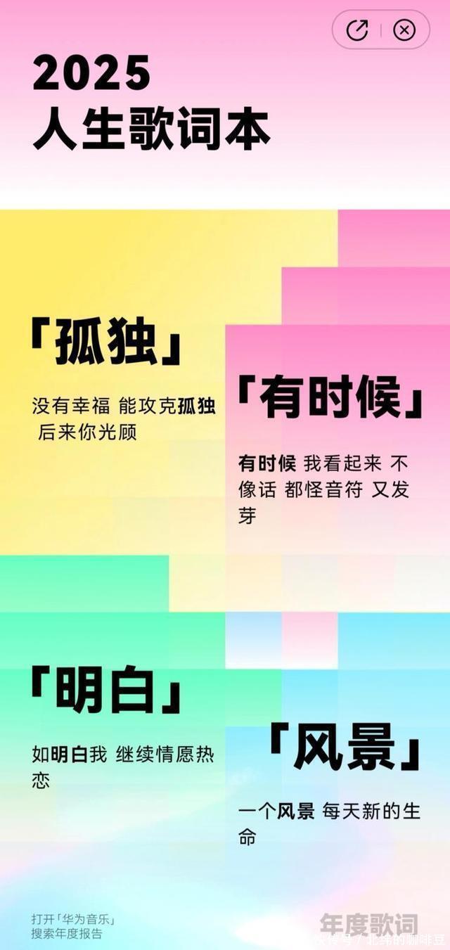 你的2025,又被哪句歌词精准命中了呢?是“孤独”还是“热血”?快去华为音乐生成你的年度报告吧。我等你们来评论区晒答案!